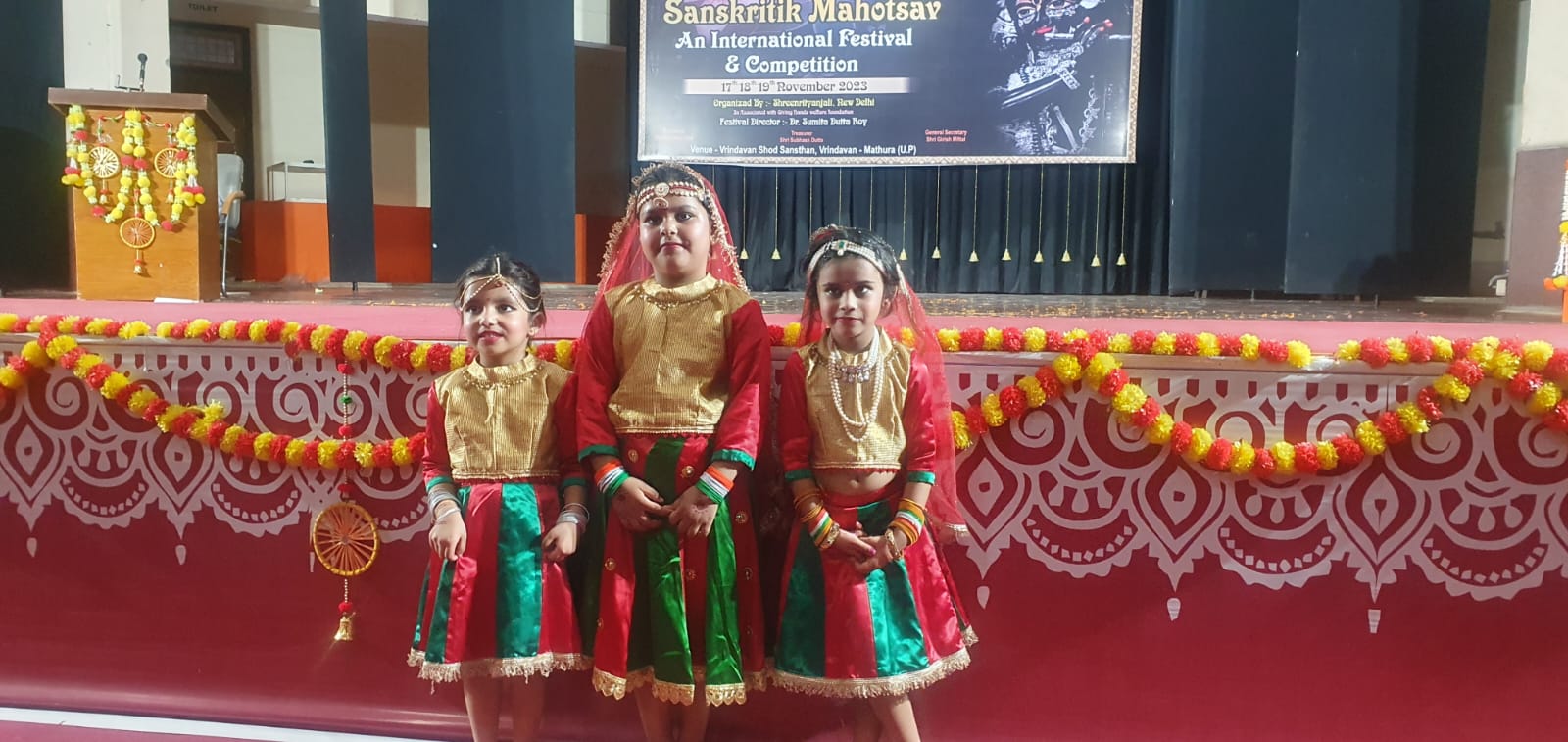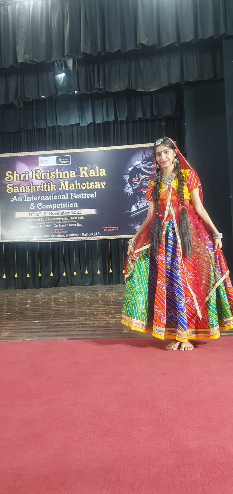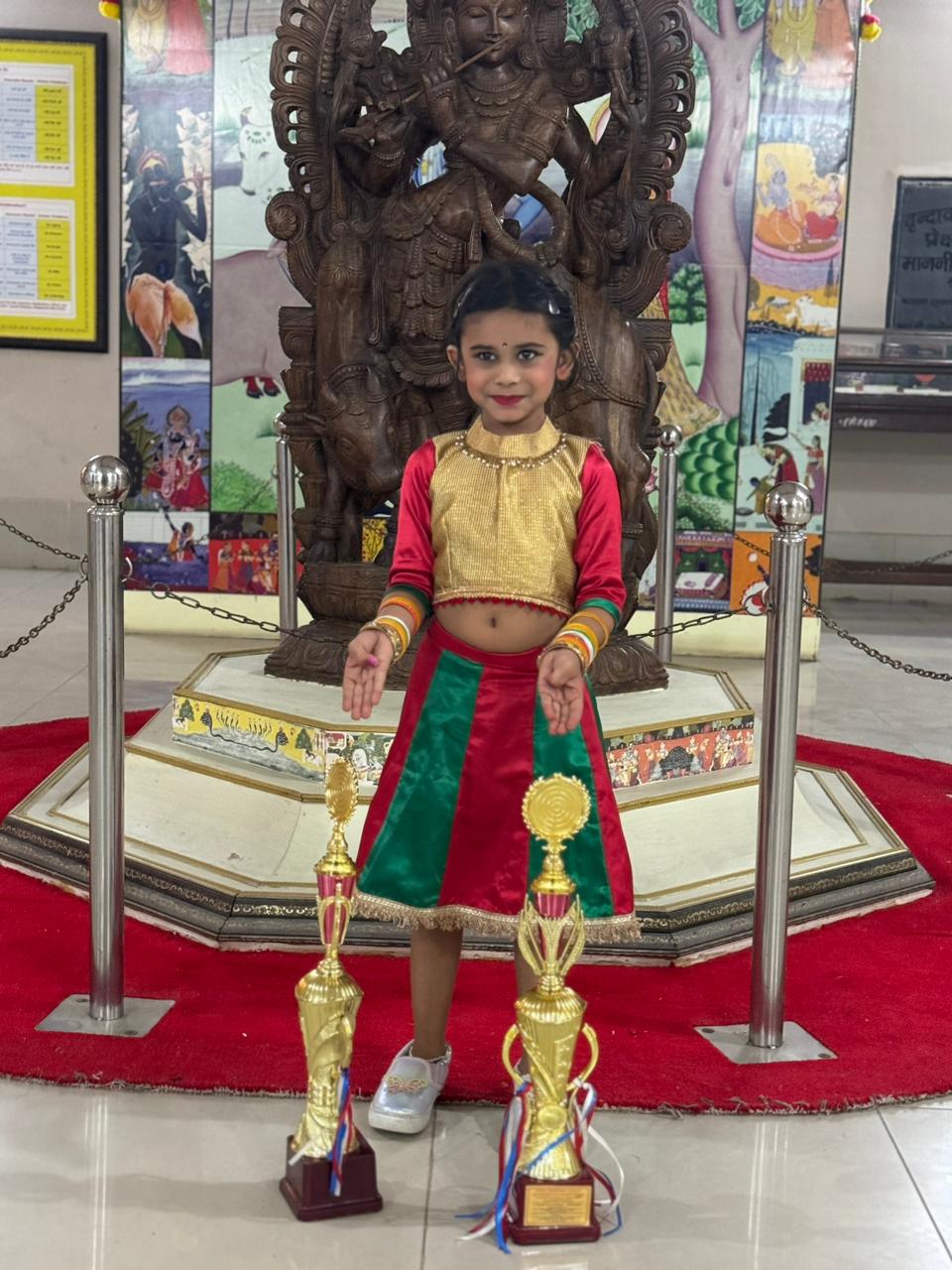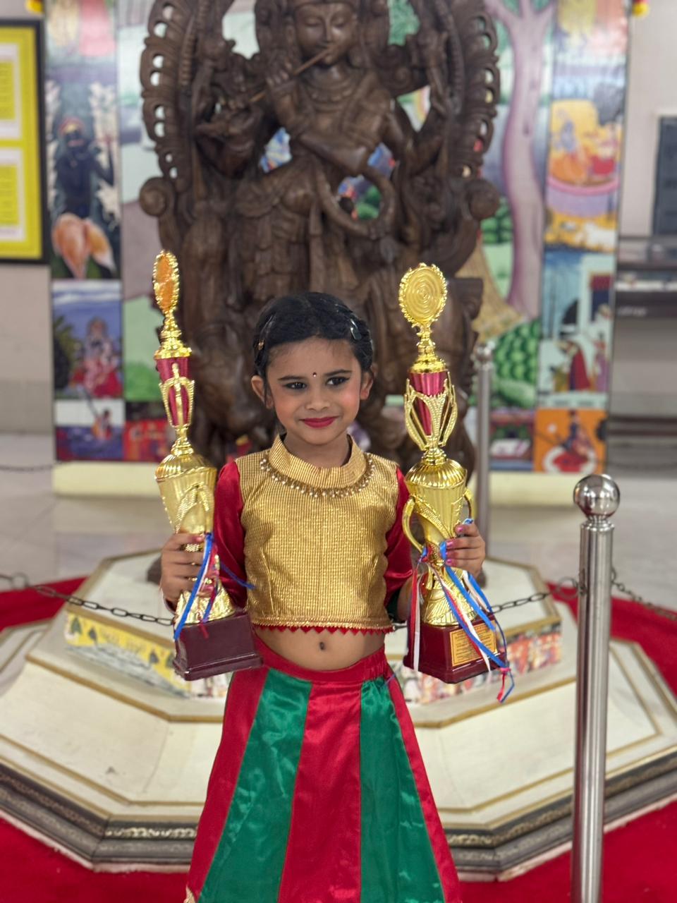 On the grand stage of Shri Nrityanjali, held as part of the prestigious Shri Krishna Kala Sanskriti Mahotsava in Vrindavan on November 17-19, 2024, our students set a new benchmark in artistic brilliance. Competing against some of the finest talents in the nation, they emerged as champions, securing the First Prize in both the Semi-Classical and Kathak dance categories. This victory is not merely a testament to their technical mastery but also to the deep cultural and spiritual essence they infused into their performances. Their flawless footwork, emotive expressions, and unwavering dedication captivated the audience and earned them the highest honor from an esteemed panel of judges. This achievement underscores our unwavering commitment to nurturing excellence in Indian classical dance, preserving its timeless heritage while inspiring future generations. We take immense pride in this milestone and remain steadfast in our mission to shape the next luminaries of the performing arts.