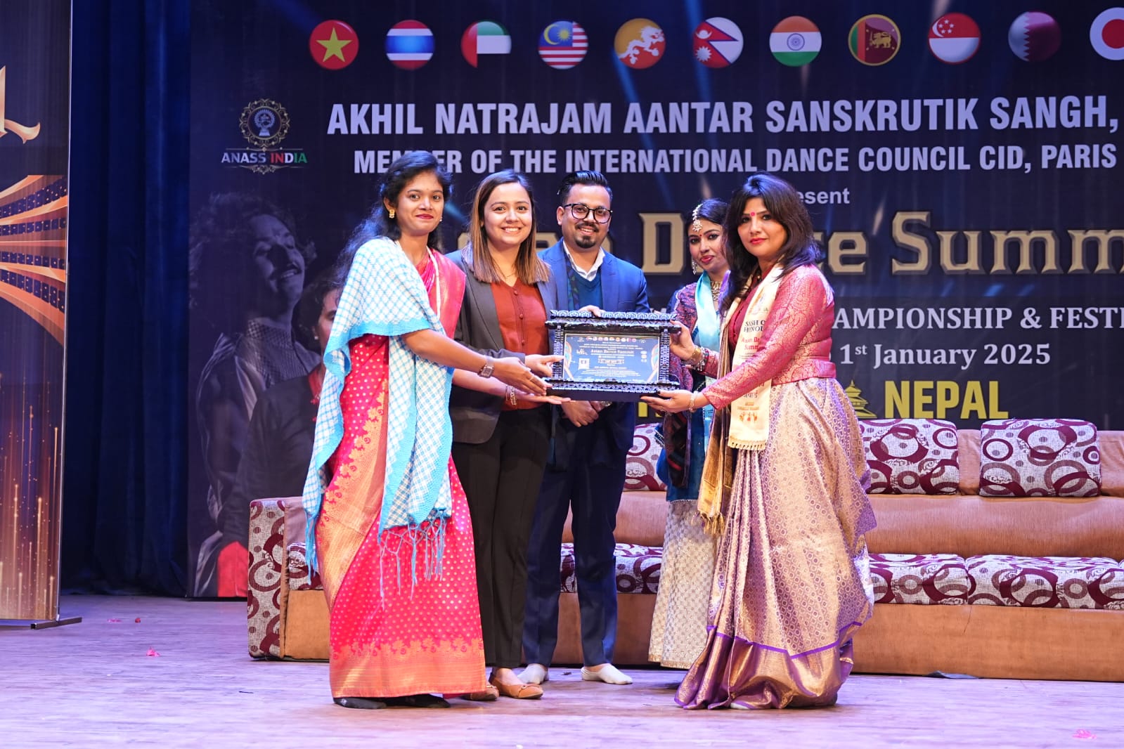 I am honored to have been a part of the International Asian Dance Summit 2024, held from December 28th to 31st in the vibrant city of Kathmandu, Nepal. This prestigious event brought together extraordinary dancers, scholars, and enthusiasts from across Asia, celebrating the rich and diverse traditions of classical and contemporary dance. As a judge for Bharatanatyam, Kuchipudi, Odissi, and Bollywood dance, I had the privilege of evaluating some of the finest talents in the field. It was an enriching experience to witness and assess performances that showcased the depth, precision, and grace of these celebrated dance forms. I was also fortunate to work alongside esteemed Indian classical dance personalities, including Rajendra Gangani Ji and Kathak Guru Sri Subhash Chandra Ji from Kathak Kendra, Delhi. Adding to this momentous occasion, I am deeply humbled to have been honored with the Nrutya Gurumani Award by ANASS India. This prestigious accolade recognizes my contributions and dedication to the art of dance, further inspiring me to continue my journey in preserving and promoting classical traditions. The International Asian Dance Summit 2024 served as a remarkable platform for cultural exchange, fostering deeper appreciation and dialogue among artists from diverse backgrounds. My experience at this event has reinforced my commitment to nurturing and advancing the legacy of classical and contemporary dance forms on a global stage. I am grateful for this opportunity to contribute to an international celebration of artistic excellence and look forward to many more such inspiring engagements in the world of dance.