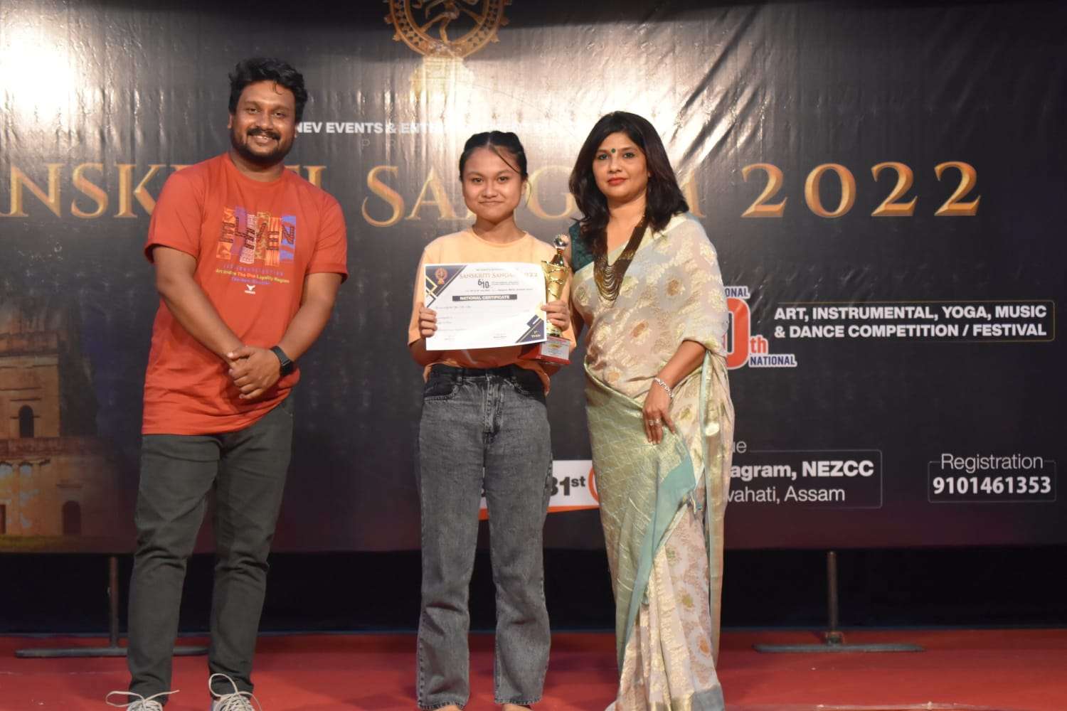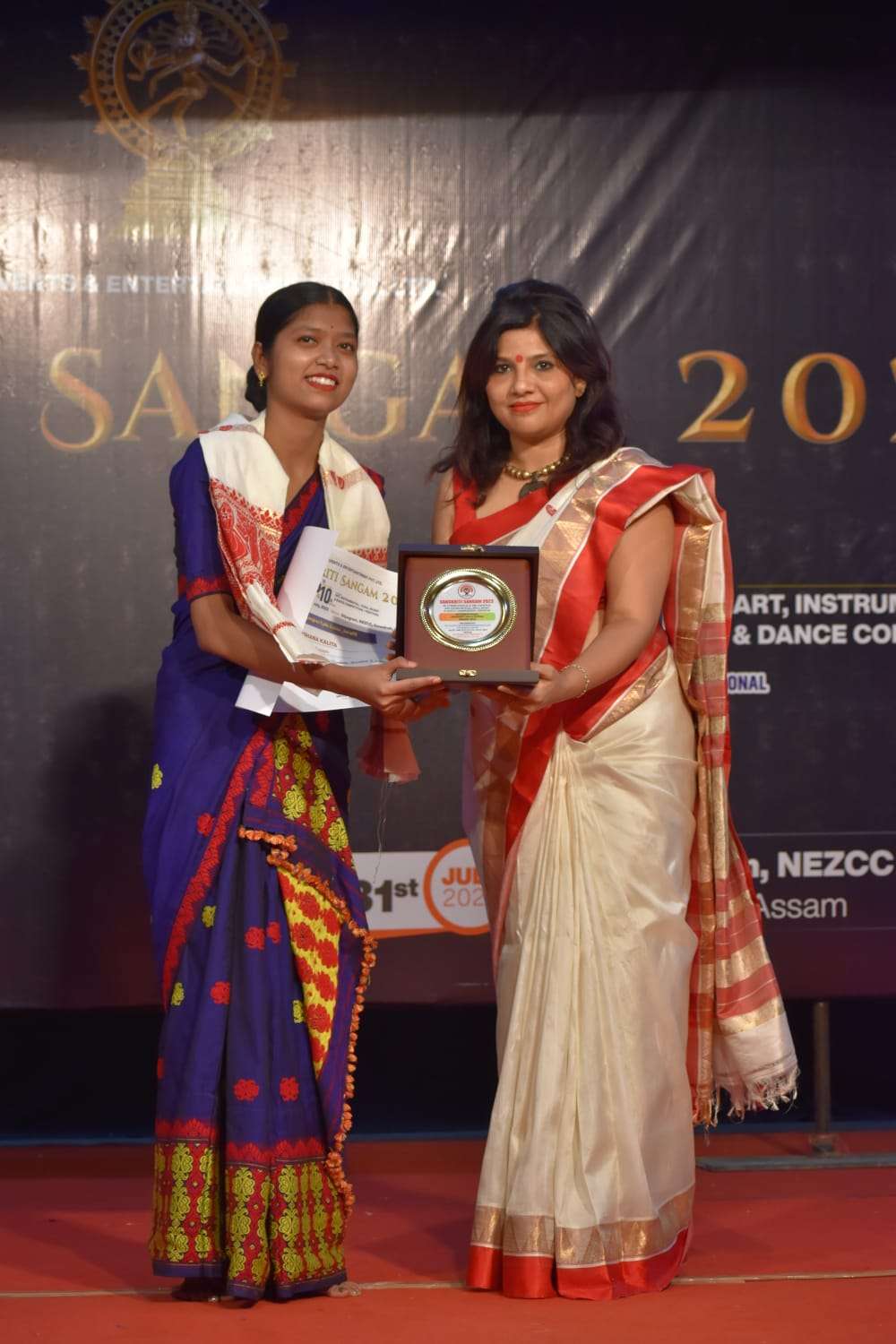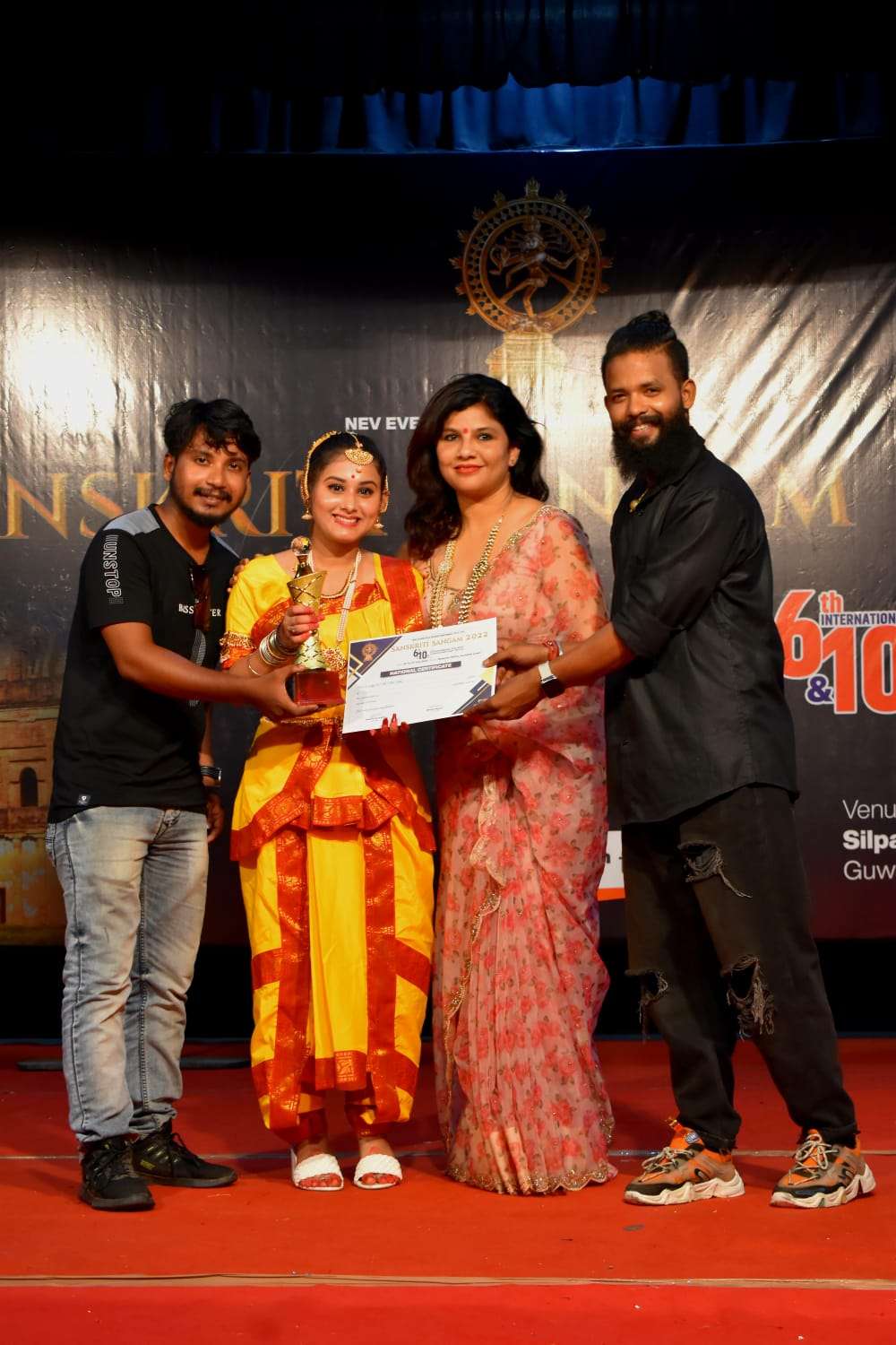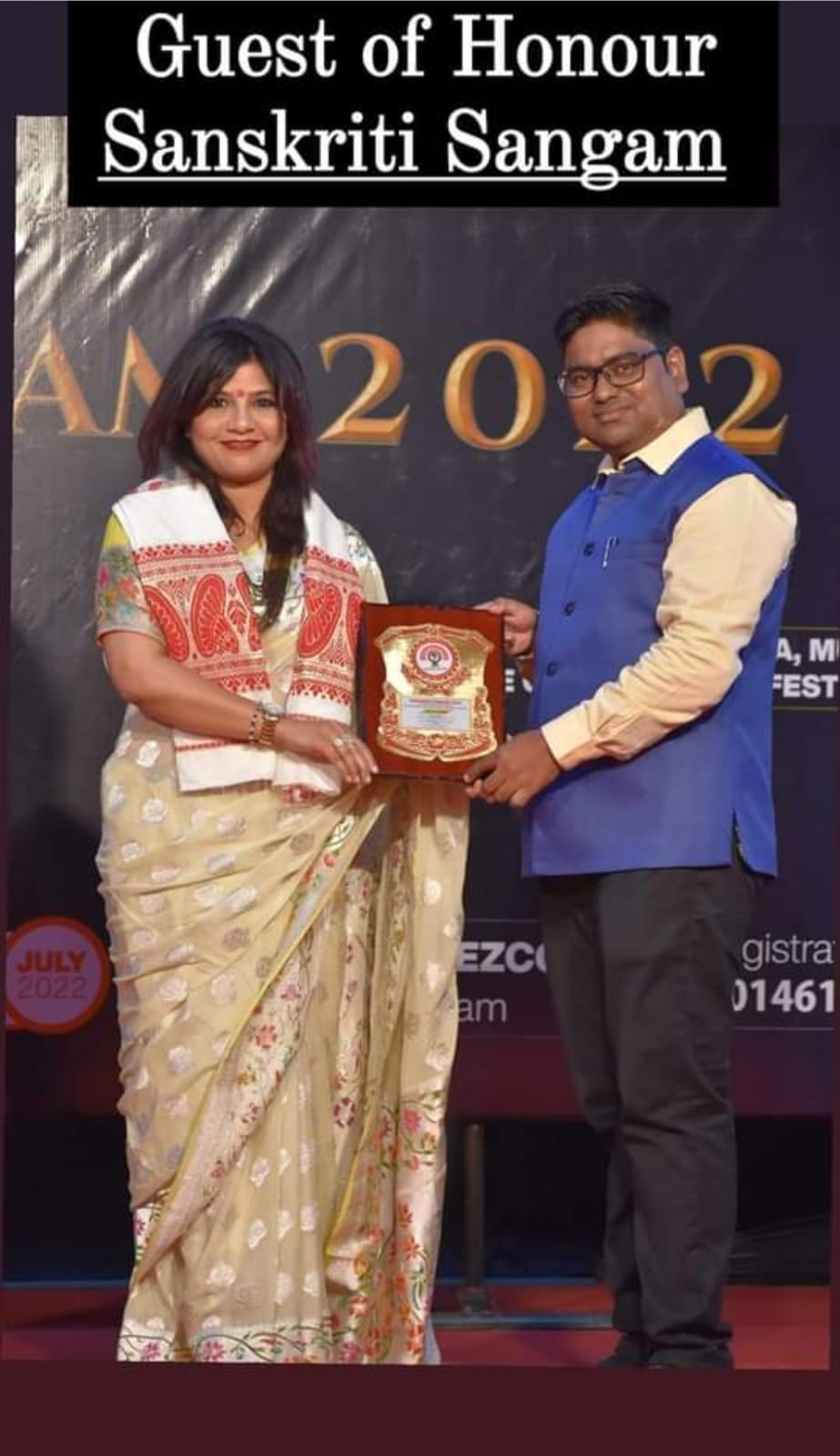 In 2022, I had the incredible honor of being a Guest of Honor at the grand cultural festival, Sanskriti Sangam 2022, hosted by NEV Events and Entertainment Pvt. Ltd. This prestigious event was the 6th International and 10th National Art, Instrumental, Yoga, and Music Dance Competition Festival, held from July 16th to July 31st at the iconic ShilpaGram Auditorium in Guwahati, Assam. The event was a spectacular celebration of India’s rich cultural diversity, bringing together talented artists, performers, and cultural enthusiasts from across the nation and around the globe. Sanskriti Sangam 2022 was not just a competition but a magnificent confluence of creativity, artistry, and heritage that showcased the vibrant traditions of India. One of the most memorable aspects of this event was the privilege of working alongside the legendary Assamese superstar Sankar Kalita, a name synonymous with excellence in the Assamese entertainment industry. Renowned for his contributions to Assamese cinema and his deep passion for preserving Assamese culture, Sankar Kalita’s presence elevated the festival to new heights. It was inspiring to witness his dedication to promoting the arts and engaging with talented individuals from various disciplines. Additionally, the event brought together several distinguished personalities from the fields of Indian art, music, and dance, making it a melting pot of cultural brilliance. Being part of this festival allowed me to witness breathtaking performances across multiple art forms, from soulful instrumental music and dynamic dance performances to awe-inspiring yoga showcases. Beyond the performances, my participation in Sanskriti Sangam 2022 was a profound opportunity to connect with India’s artistic legacy. It underscored the importance of cultural unity and the role of the arts in bringing people together. Engaging with artists from diverse backgrounds was not only humbling but also a powerful reminder of the transformative power of culture. Looking back, Sanskriti Sangam 2022 remains a defining highlight of my journey as a cultural advocate. It reaffirmed my commitment to celebrating and supporting the arts while embracing India’s timeless traditions. This extraordinary event stands as a testament to the enduring beauty of Indian culture and its ability to inspire and unite us all.