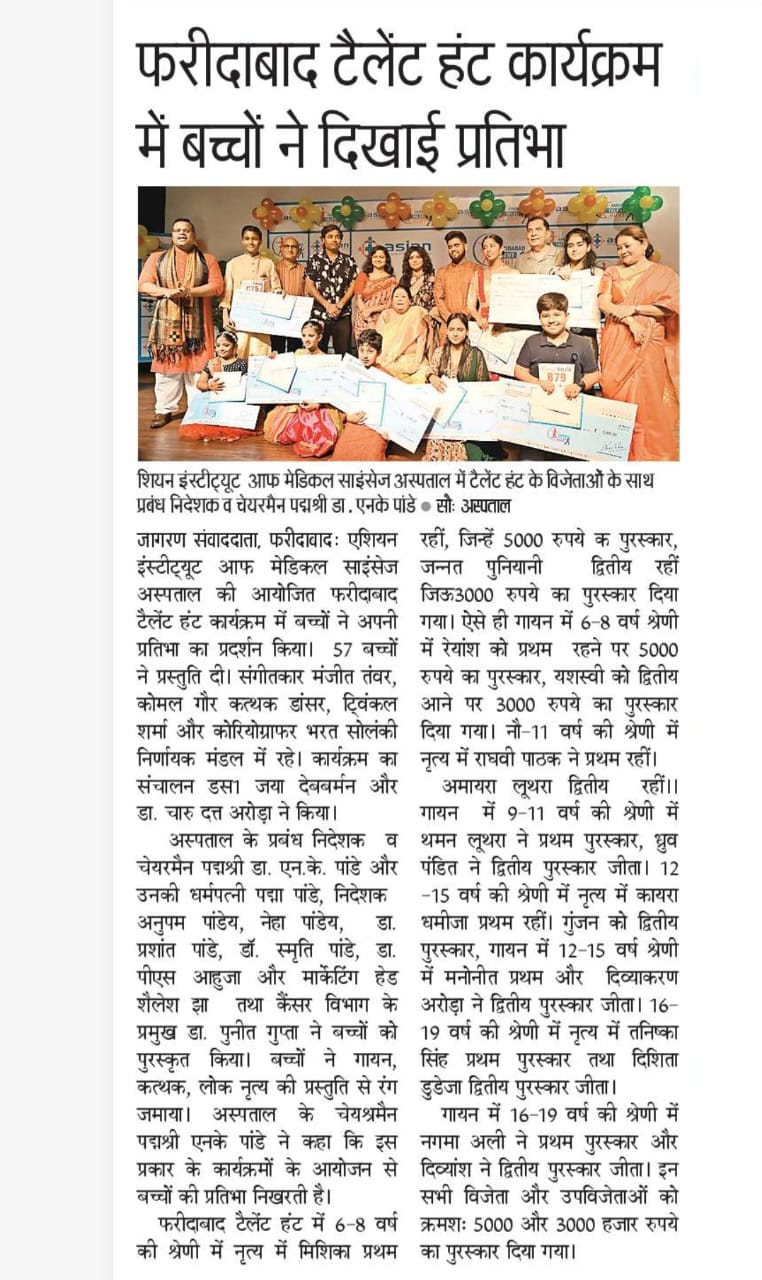I had the distinct honor of being awarded by the prestigious Asian Institute of Medical Sciences for serving as a distinguished judge at Talent Hunt 2024, a highly anticipated state-level competition. This recognition celebrates my unwavering commitment to encouraging creativity, nurturing talent, and promoting excellence among participants. As a judge, I was entrusted with the responsibility of evaluating a wide range of diverse and extraordinary talents. This role required not only a keen eye for detail but also an in-depth understanding of artistic expression, technical skill, and innovation. Ensuring fairness and professionalism in my evaluations, I aimed to provide constructive feedback and inspire participants to reach their highest potential. Judging such a prominent event was a deeply rewarding experience that underscored my dedication to fostering artistic growth and supporting initiatives that celebrate and uplift emerging talent. Being part of Talent Hunt 2024 allowed me to witness the vibrant cultural and creative spirit of the participants, and I am grateful for the opportunity to contribute to a platform that nurtures the future of artistry and innovation.